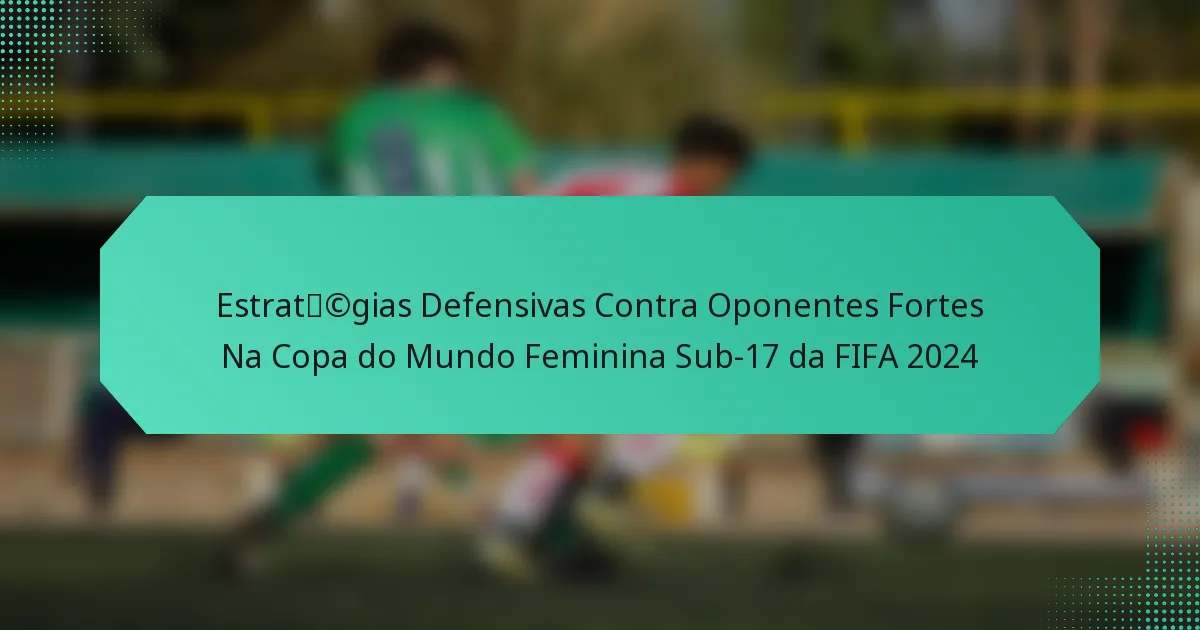 As estratégias defensivas eficazes no Campeonato do Mundo Feminino Sub-17 da FIFA 2024 focam em formações, posicionamento dos jogadores e comunicação para contrariar adversários fortes. As equipas devem adaptar as suas táticas com base nas forças dos seus rivais, enquanto empregam técnicas de pressão e contra-pressão para recuperar a posse.