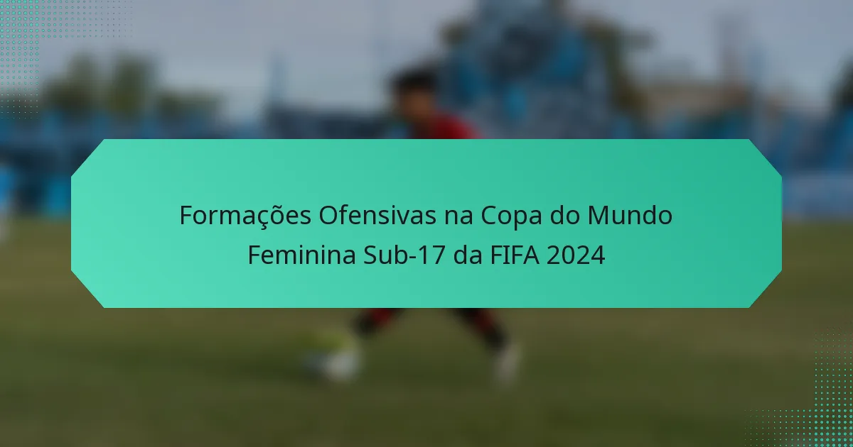 A Copa do Mundo Feminina Sub-17 da FIFA 2024 destaca a importância estratégica das formações ofensivas na definição do desempenho da equipa e do potencial de golos. As equipas utilizam várias formações, como 4-3-3, 4-2-3-1, 3-5-2 e 5-3-2, cada uma desenhada para otimizar o seu jogo ofensivo e adaptar-se a diferentes adversários. Estas escolhas táticas influenciam significativamente a forma como as equipas criam e convertem oportunidades de golo ao longo do torneio.