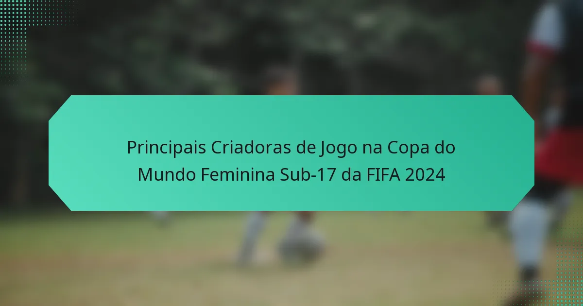As principais criadoras de jogo na Copa do Mundo Feminina Sub-17 da FIFA 2024 são jogadoras de destaque que se destacam na criação de oportunidades de golo e na condução das estratégias ofensivas das suas equipas. As suas habilidades e contribuições únicas influenciam significativamente os resultados dos jogos e a dinâmica da equipa.